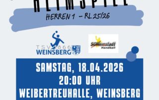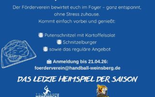 Am Sa., 25.04.2026 steht in der Weibertreuhalle ein ganz besonderer Spieltag an! 💙🤍 Der Förderverein Handball Weinsberg lädt euch bereits ab 17:00 Uhr ins Foyer ein – ganz entspannt ankommen, lecker essen und gemeinsam einstimmen [...]